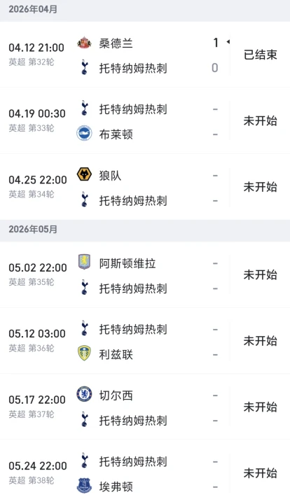 热刺本赛季后续赛程,以及积分榜现状如本文配图所示。